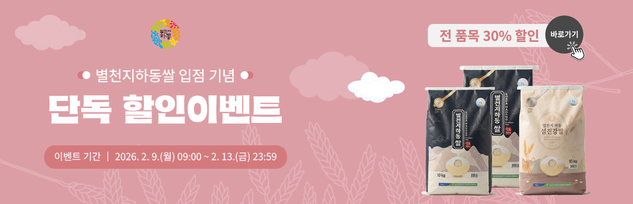 별천지하동 쇼핑몰에 하동쌀이 새롭게 입점했습니다! 이를 기념하여 전 품목 30% 할인 행사를 진행합니다.